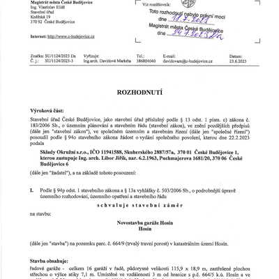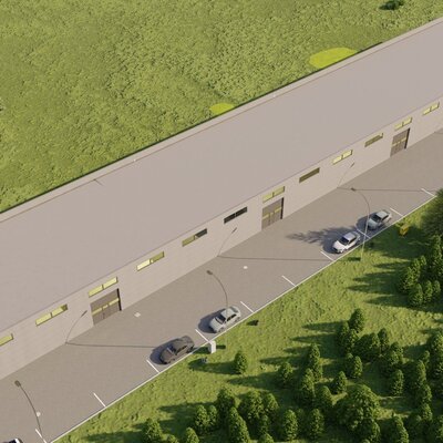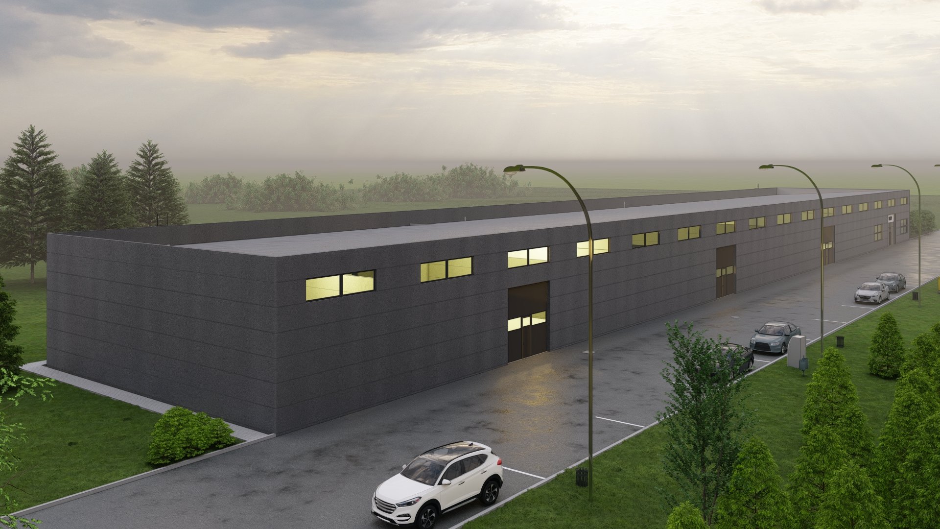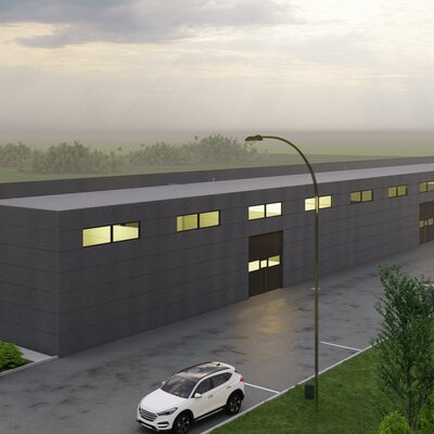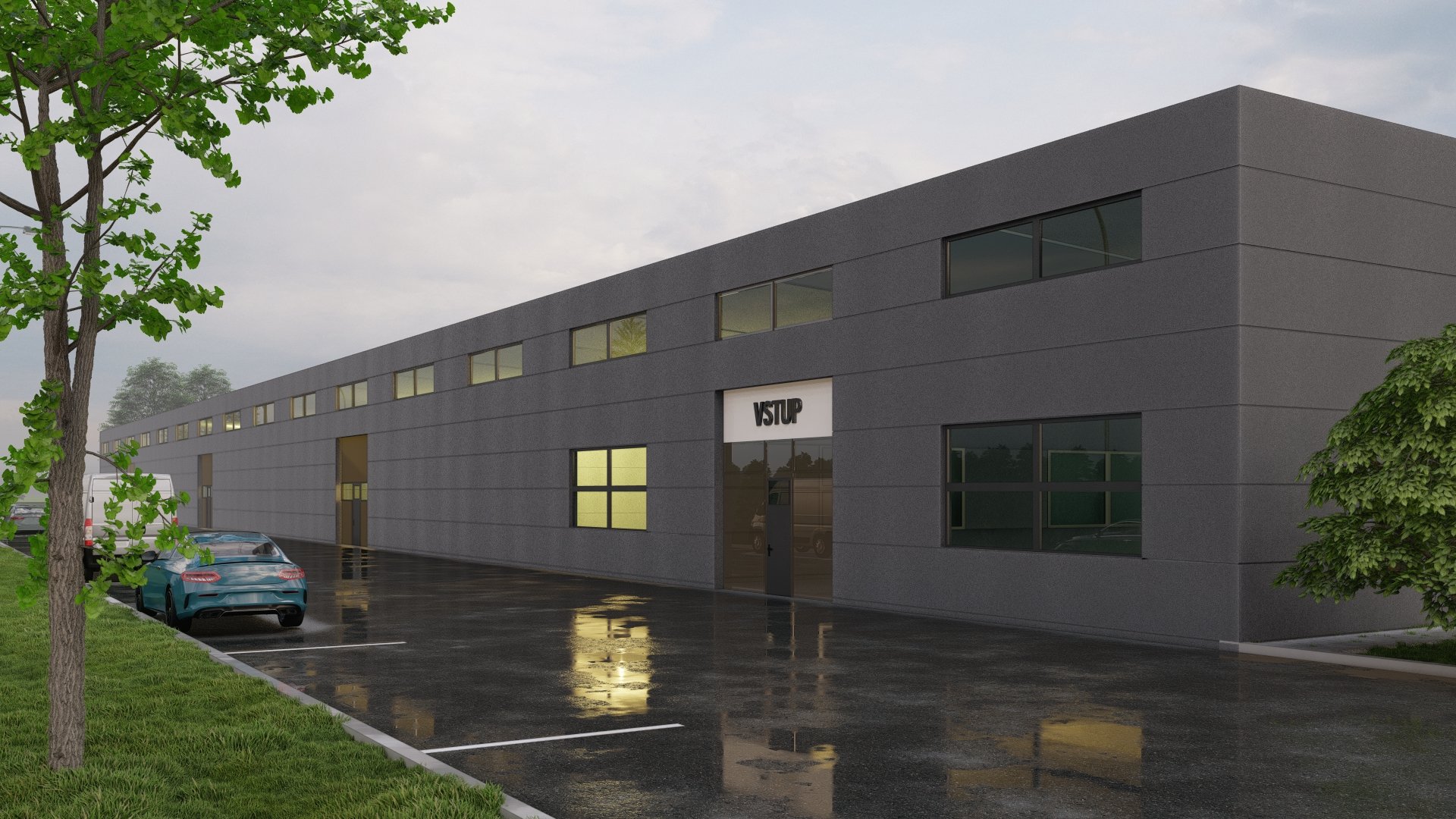Celý objekt má velice jednoduché dispoziční řešení, které odpovídá jeho účelu. Je tvořen šestnácti identickými buňkami, kde každou buňku tvoří vždy vlastní skladový prostor a dále zázemí obsahující denní místnost a WC s umývárnou. Objekt má obdélníkový půdorys s podélnou osou východ – západ, je nepodsklepený, jednopodlažní, bezbariérový s pultovou jednoplášťovou střechou. Jedná se o moderní průmyslovou stavbu jednoduchého geometrického tvaru. Základním vnějším materiálem, který je členěn v pravidelném rastru, je sendvičový PIR panel. Výrazným prvkem severní fasády jsou garážová sekční vrata v barvě antracit a plastová okna nad nimi ve stejné barvě. Dveře a okna, která tvoří členění na jižní straně fasády, jsou také plastová ve stejné barvě. Pozemek bude napojen na stávající technickou infrastrukturu přípojkou elektrické energie z nově vybudované trafostanice v rámci stavby a zásobován vodou z vlastního vrtu.