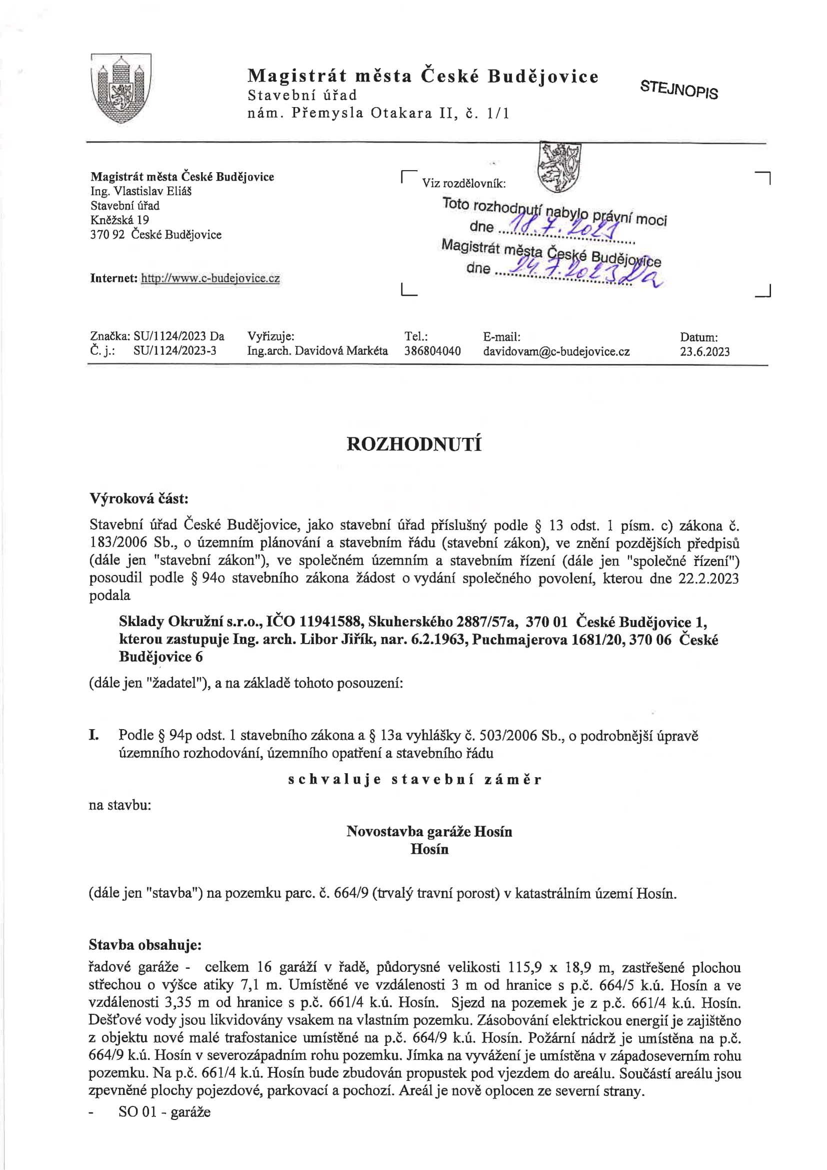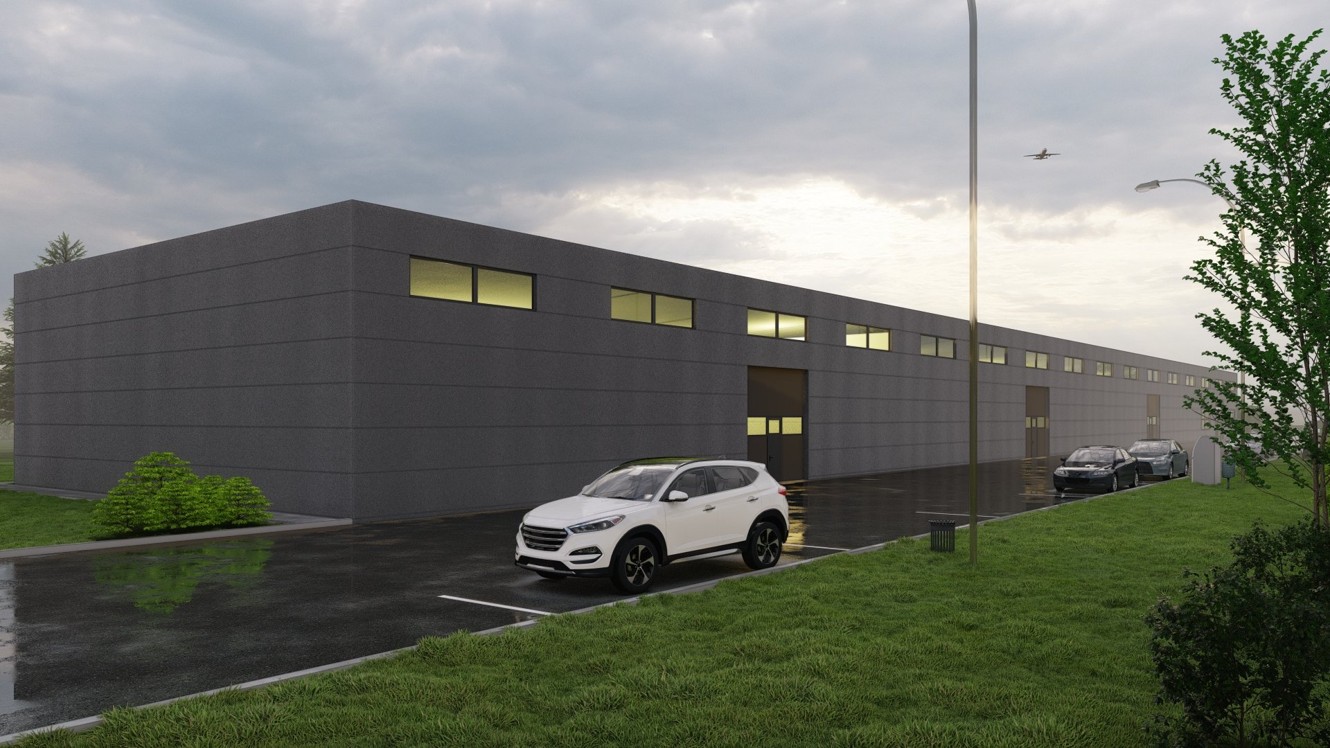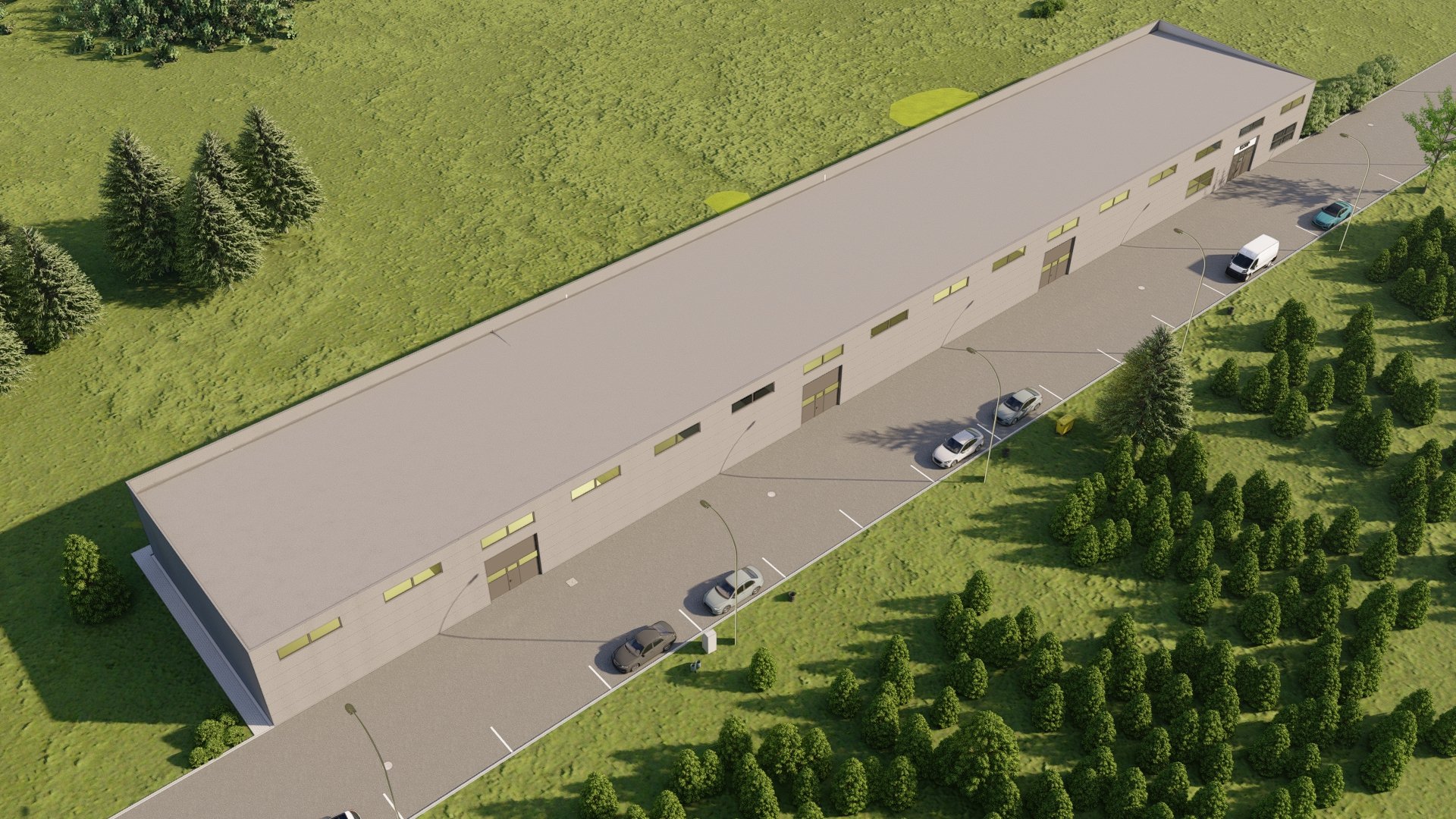 Celý objekt má velice jednoduché dispoziční řešení, které odpovídá jeho účelu. Je tvořen šestnácti identickými buňkami, kde každou buňku tvoří vždy vlastní skladový prostor a dále zázemí obsahující denní místnost a WC s umývárnou. Objekt má obdélníkový půdorys s podélnou osou východ – západ, je nepodsklepený, jednopodlažní, bezbariérový s pultovou jednoplášťovou střechou. Jedná se o moderní průmyslovou stavbu jednoduchého geometrického tvaru. Základním vnějším materiálem, který je členěn v pravidelném rastru, je sendvičový PIR panel. Výrazným prvkem severní fasády jsou garážová sekční vrata v barvě antracit a plastová okna nad nimi ve stejné barvě. Dveře a okna, která tvoří členění na jižní straně fasády, jsou také plastová ve stejné barvě. Pozemek bude napojen na stávající technickou infrastrukturu přípojkou elektrické energie z nově vybudované trafostanice v rámci stavby a zásobován vodou z vlastního vrtu.
